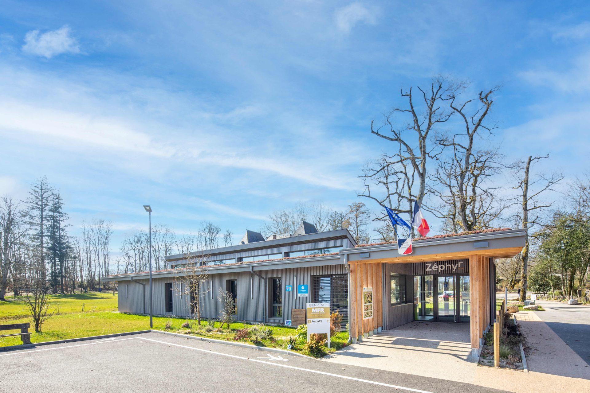 Construction d'un bâtiment administratif ZEPHYR et aménagements extérieurs sur le site de la MFR de Péronnas Nom du photographe : Daniel Gillet